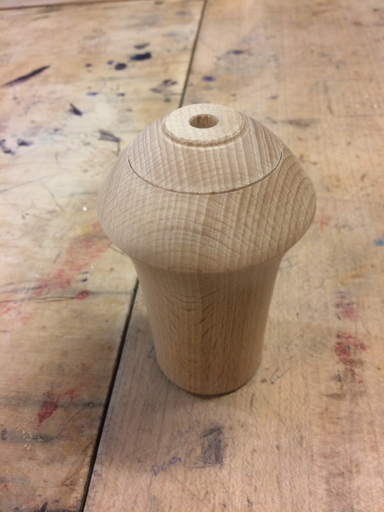 In the second half of the demonstration he showed us how to turn and construct the inner cocktail stick holder and why the design was configured the way it was. And finally the tricky bit – the finial. This is Roy’s version but he did say that there was much scope for invention!