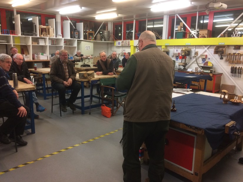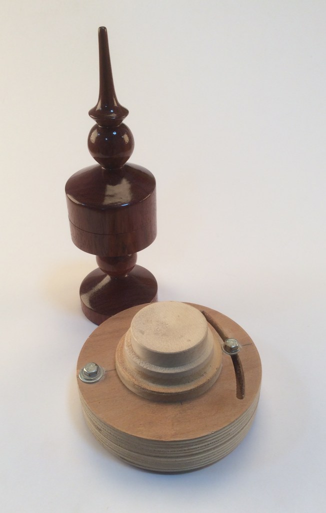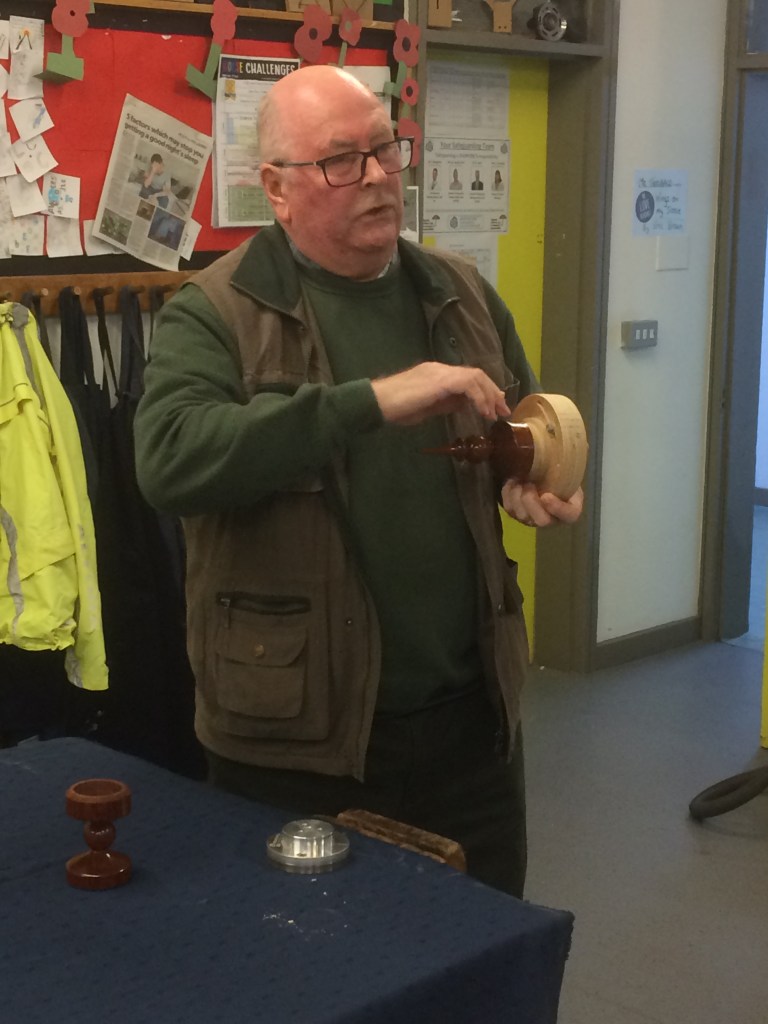 Roy kicked off a lightly attended evening by showing his off centre ring box in Goncalo Alves and the jig he had made to produce it