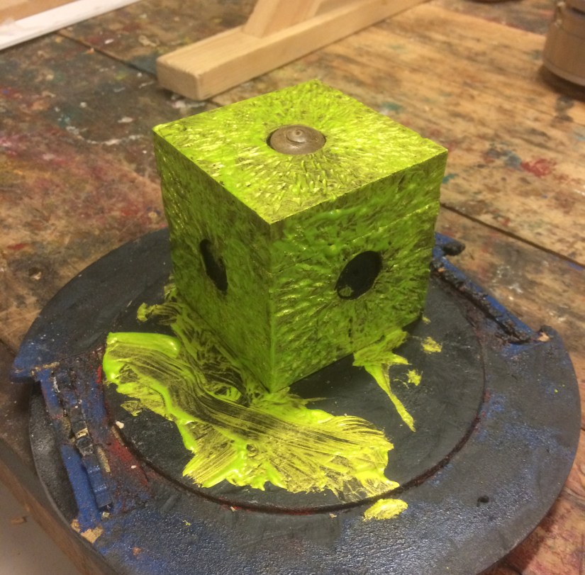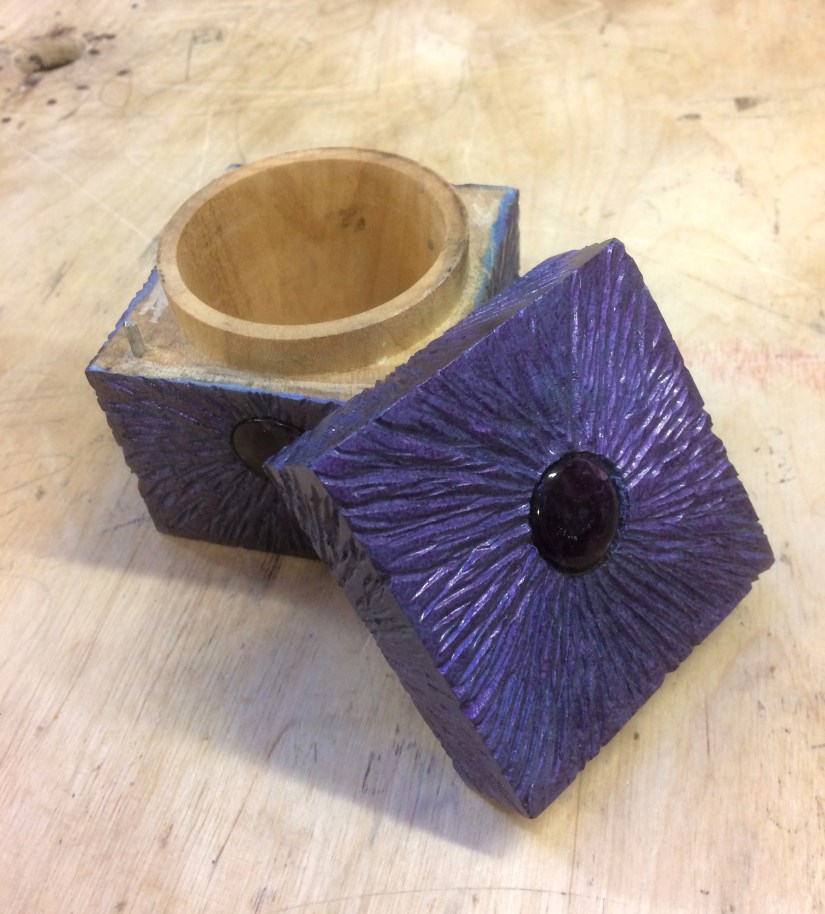 With the box now completed Geoff then demonstrated his technique of texturing the outside of the piece with a Dremel before painting with iridescent paint.