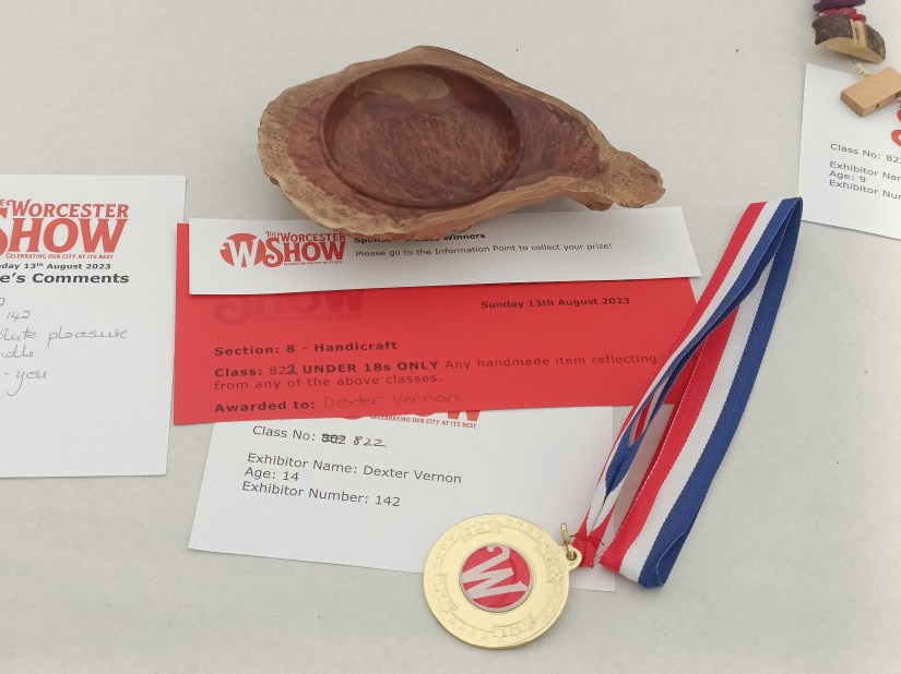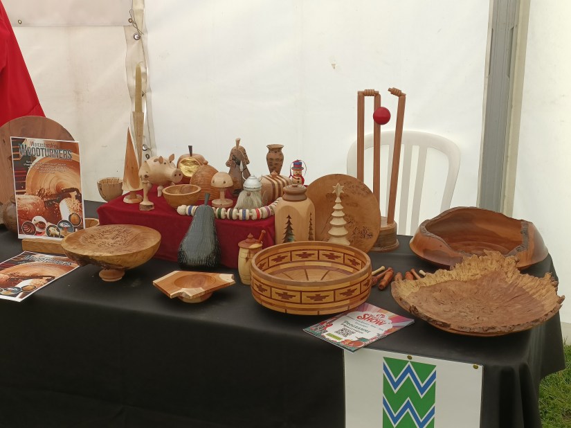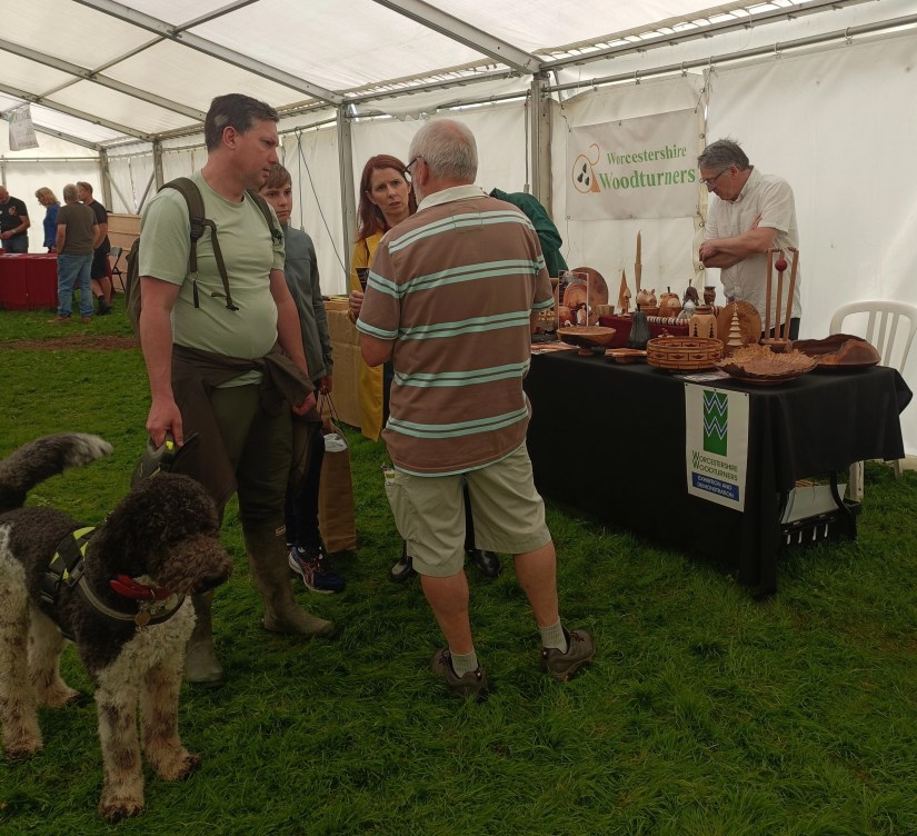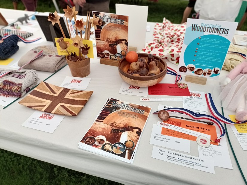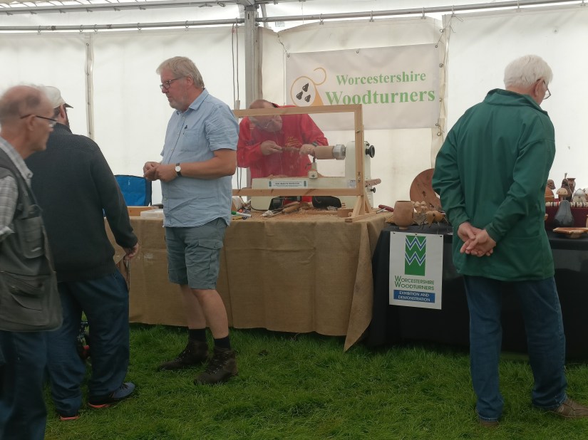 On this Sunday our club took a stand at the annual Worcester Show at the racecourse. Organised by Russell, several volunteers took turns to explain the purpose of the club to the public with a view to recruiting new members. Alan E and Phil held demonstrations of woodturning throughout the day which attracted respectable crowds at times.