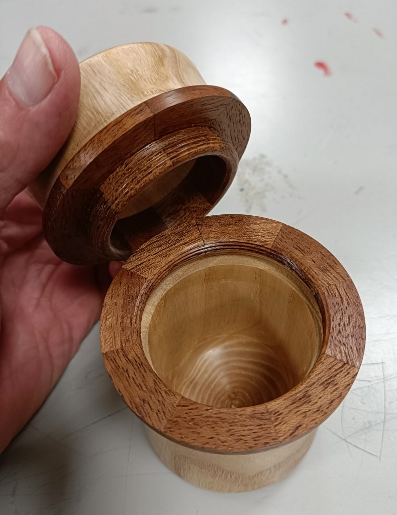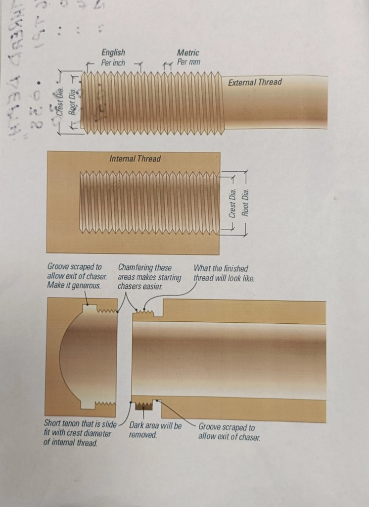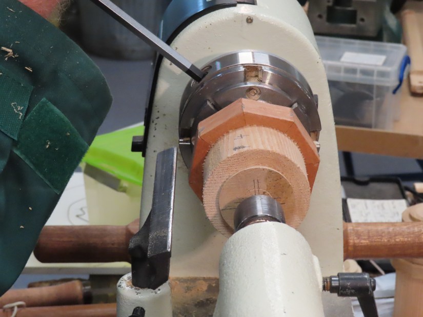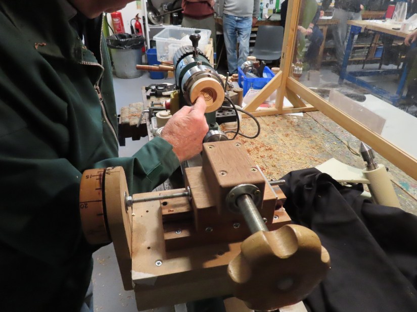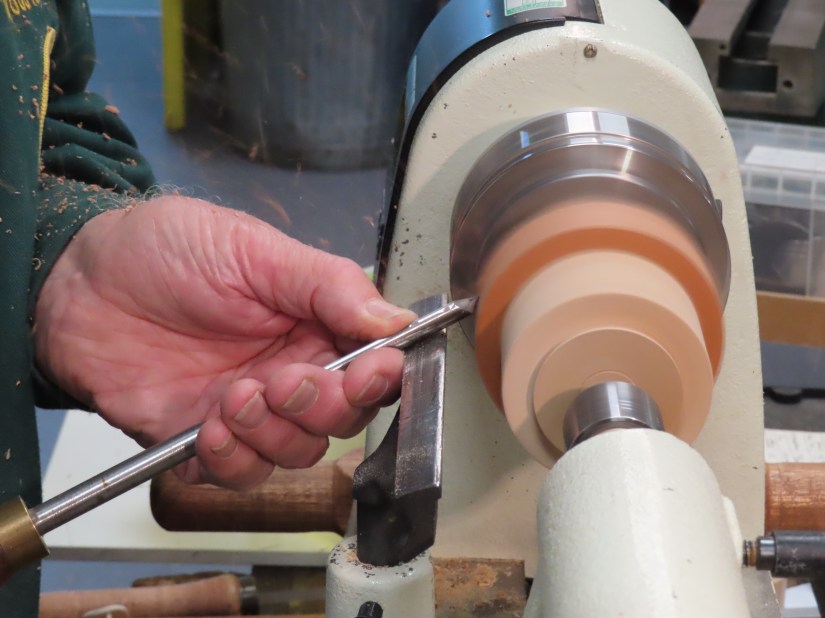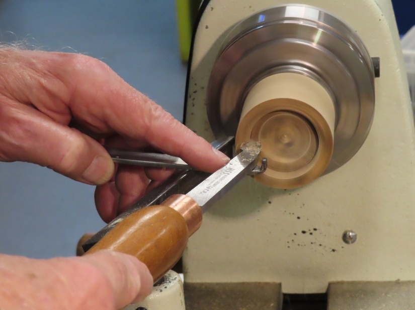 The first method – the hardest – was to cut first the internal ‘screw’ being careful to include an undercut at the bottom and a bevel at the top. Using the same technique he then carefully cut the external ‘screw’ to match. But, and this is a big but, this method is only effective on harder (and more expensive) woods.