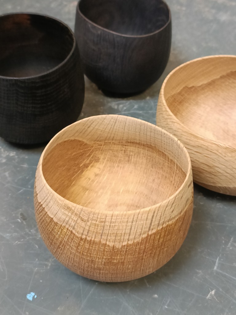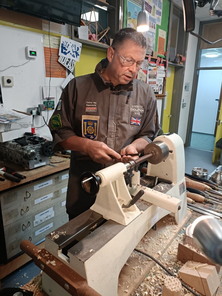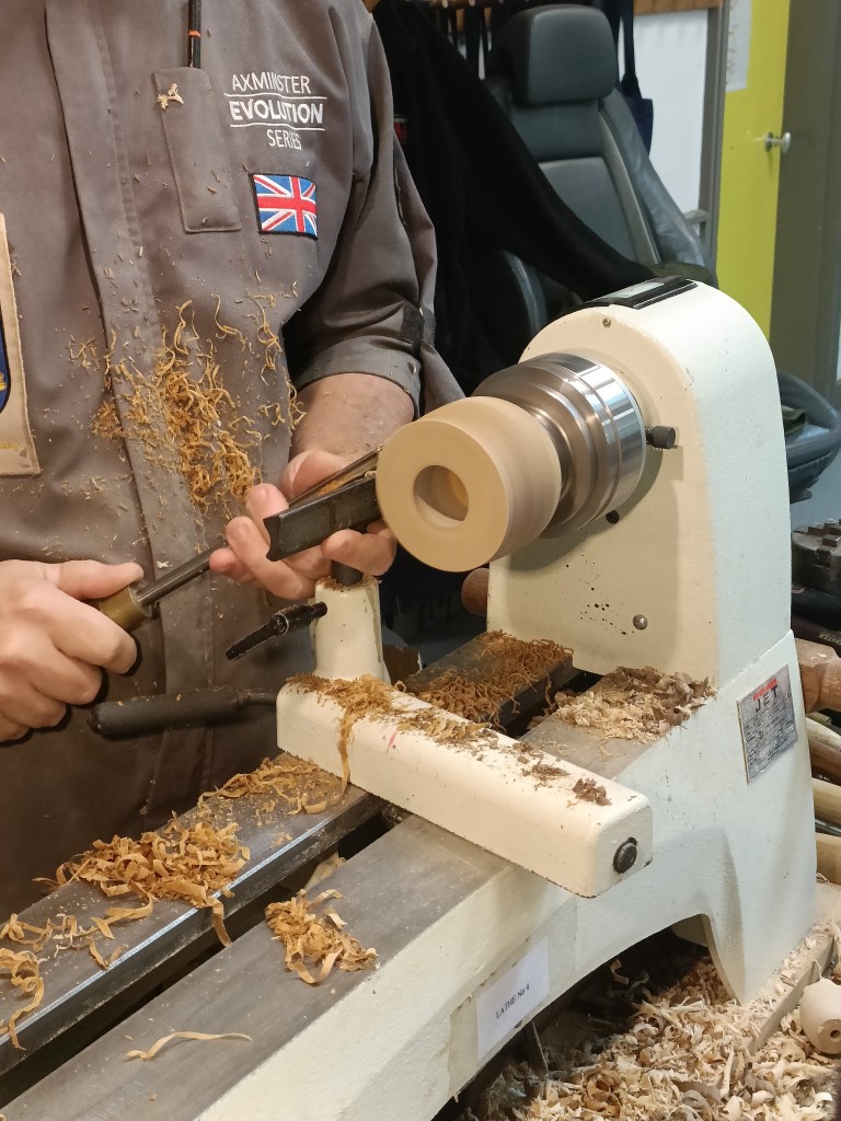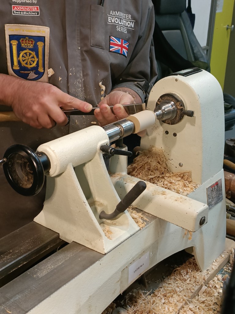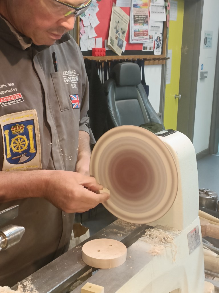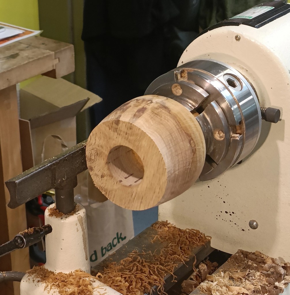 Because there was time Colwin showed his versatility by turning some bowls out of green oak and finally an offset pendant using a bespoke chuck.
