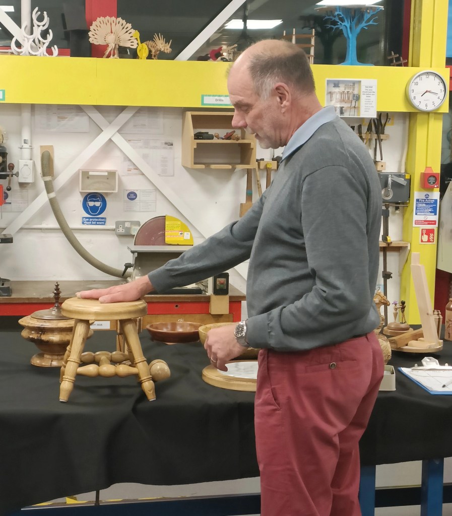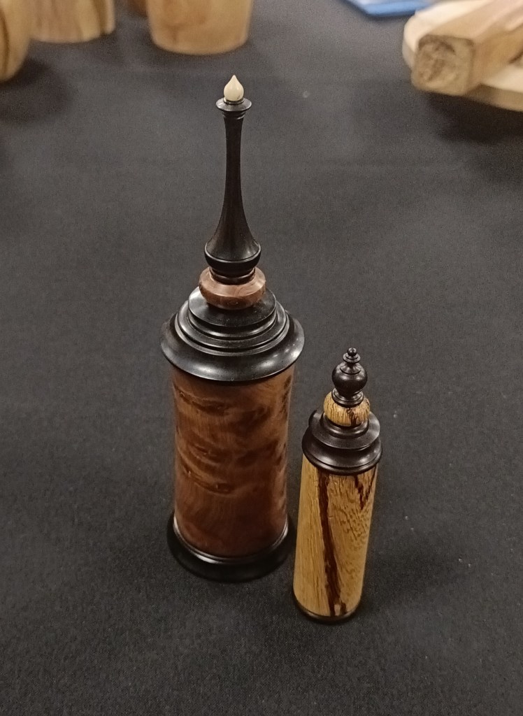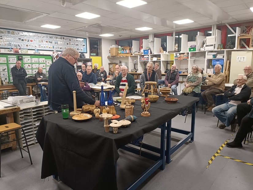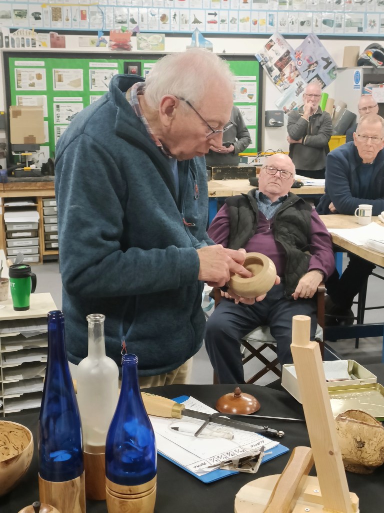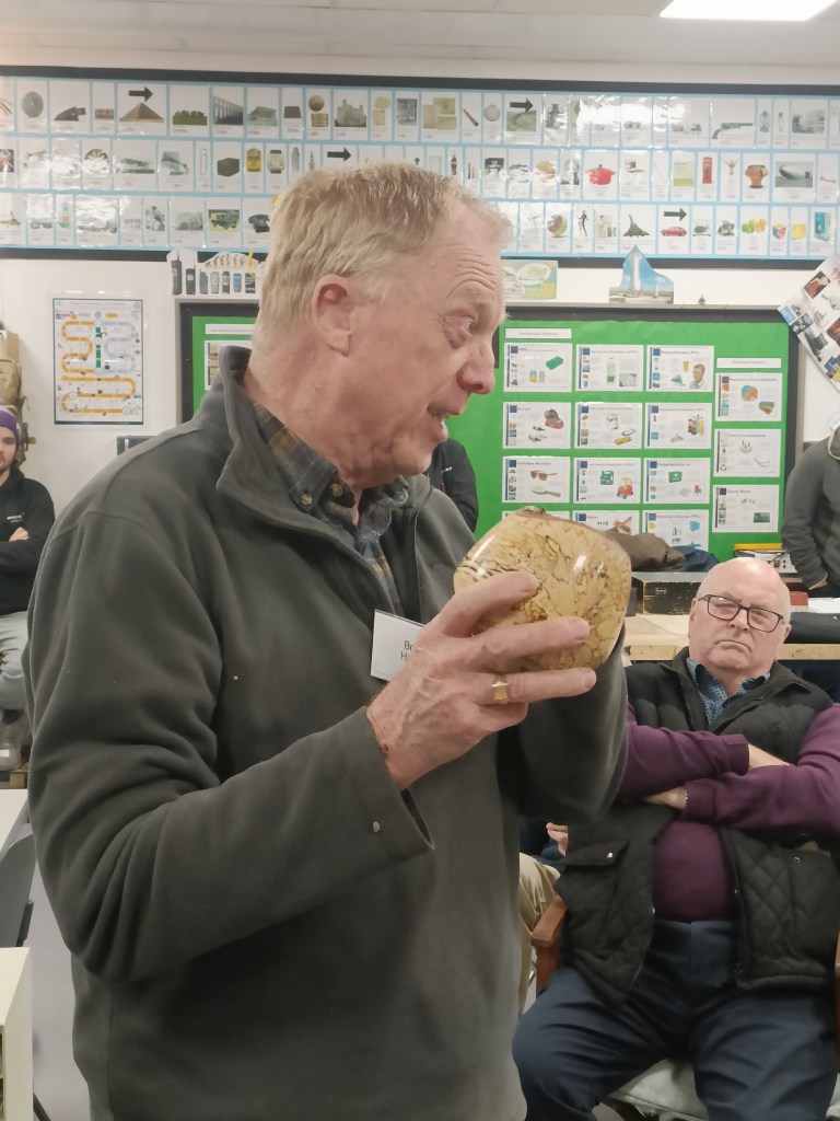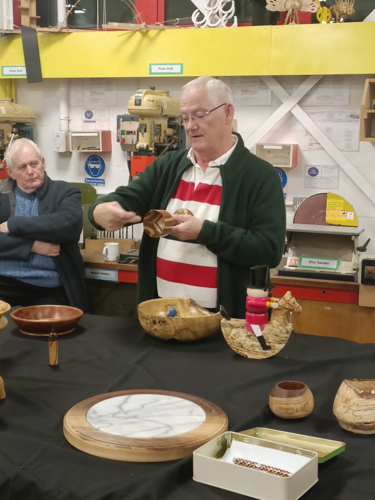 As usual this evening’s Show and Tell illustrated the variety of work our members undertake in their sheds from intricately crafted items like those shown by Dexter and Roger to the more experimental work of Russell, Mark and Steve.