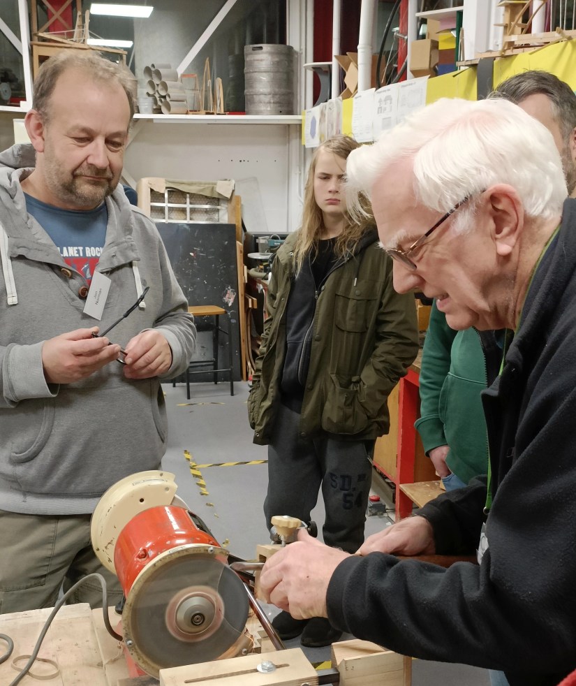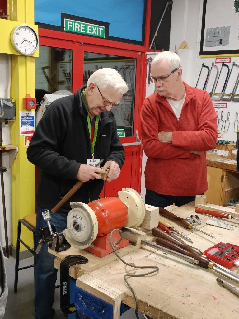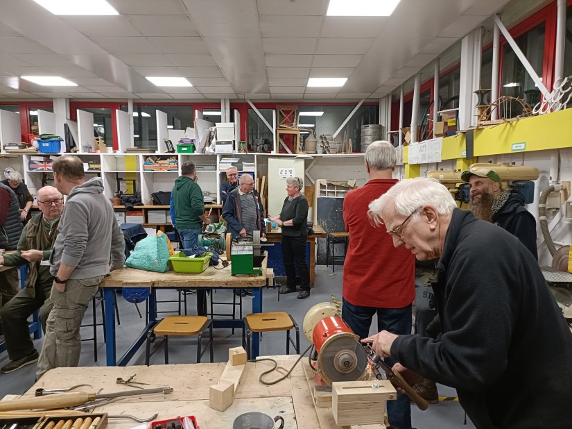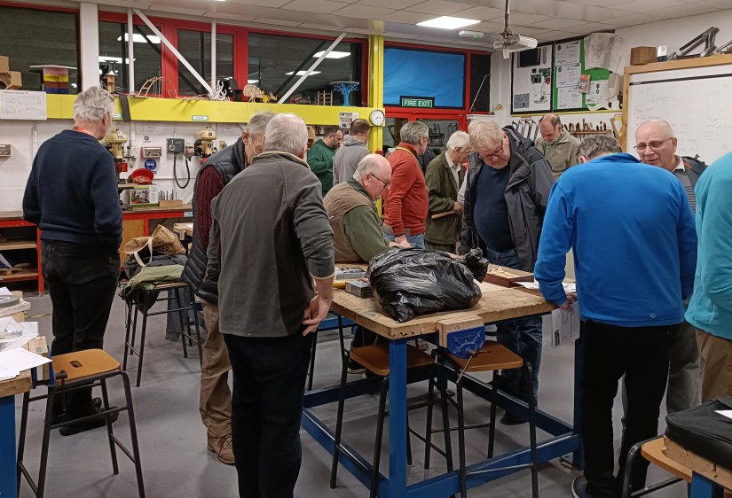 Tonight’s well attended evening was a Bring and Buy where several people brought in woodturning items that were surplus to requirements – a great opportunity for our newer members to add to their range of tools and wood. Also Alan Edwards kindly brought in his tool sharpening rig and was consequently very busy all evening!