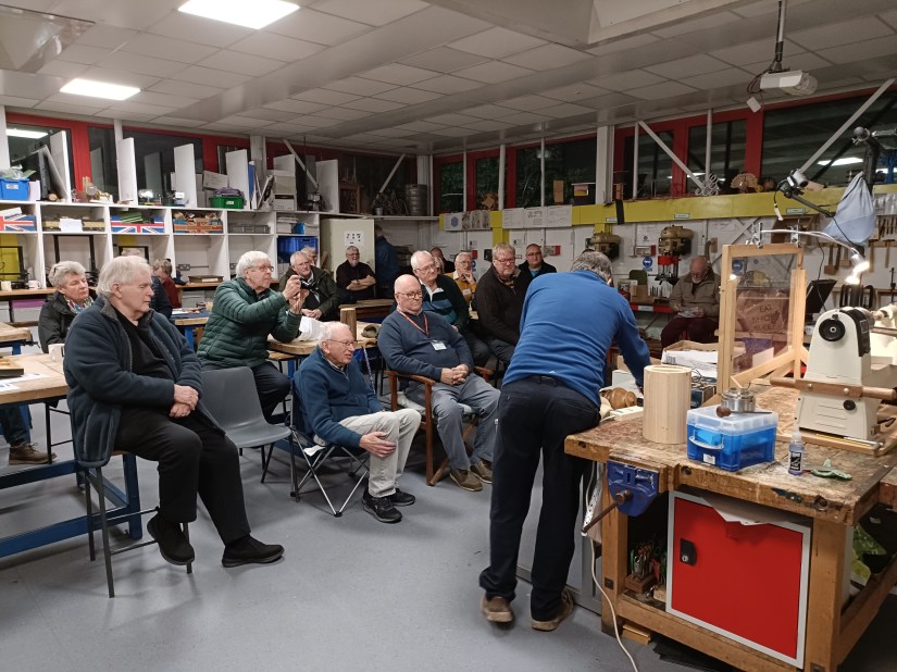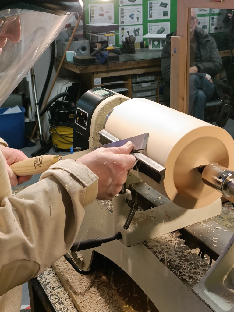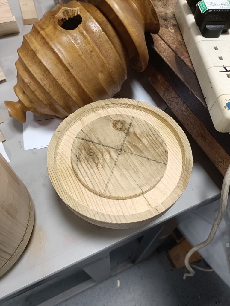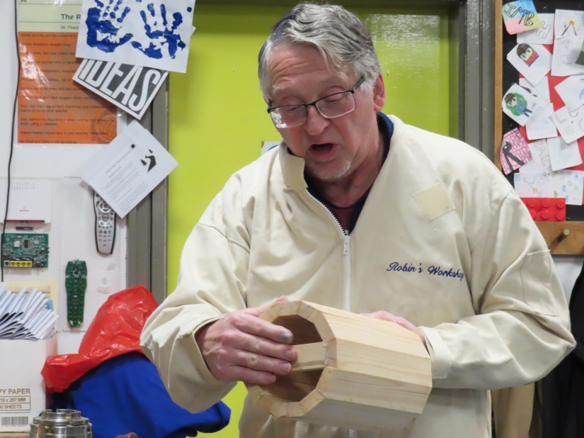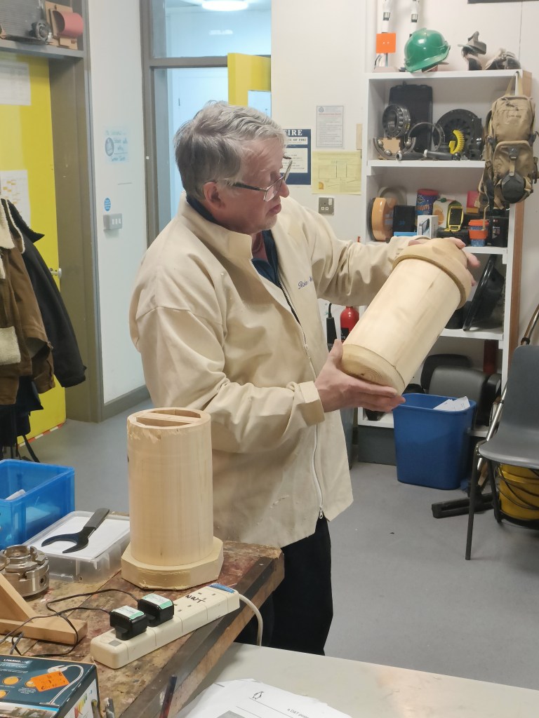 And finally the top which, when finished, would be screwed into the body so it could be removed for cleaning. Unfortunately, due to a number of technical difficulties (which every turner has from time to time) throughout the demo, Robin didn’t manage to finish the project. A valliant attempt nevertheless!
