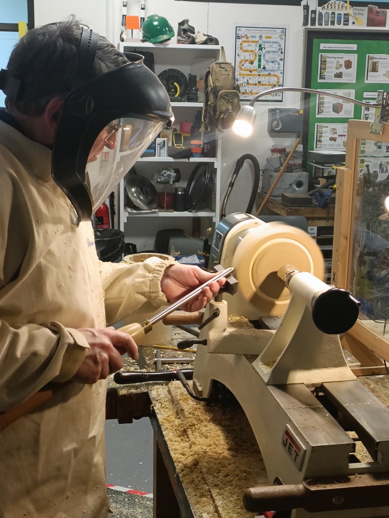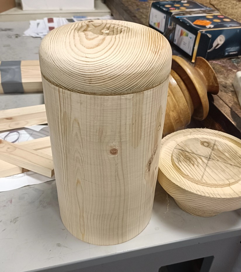 Once round Robin set about turning the base for the box.