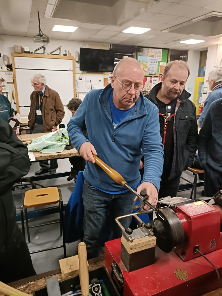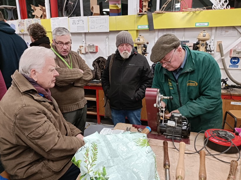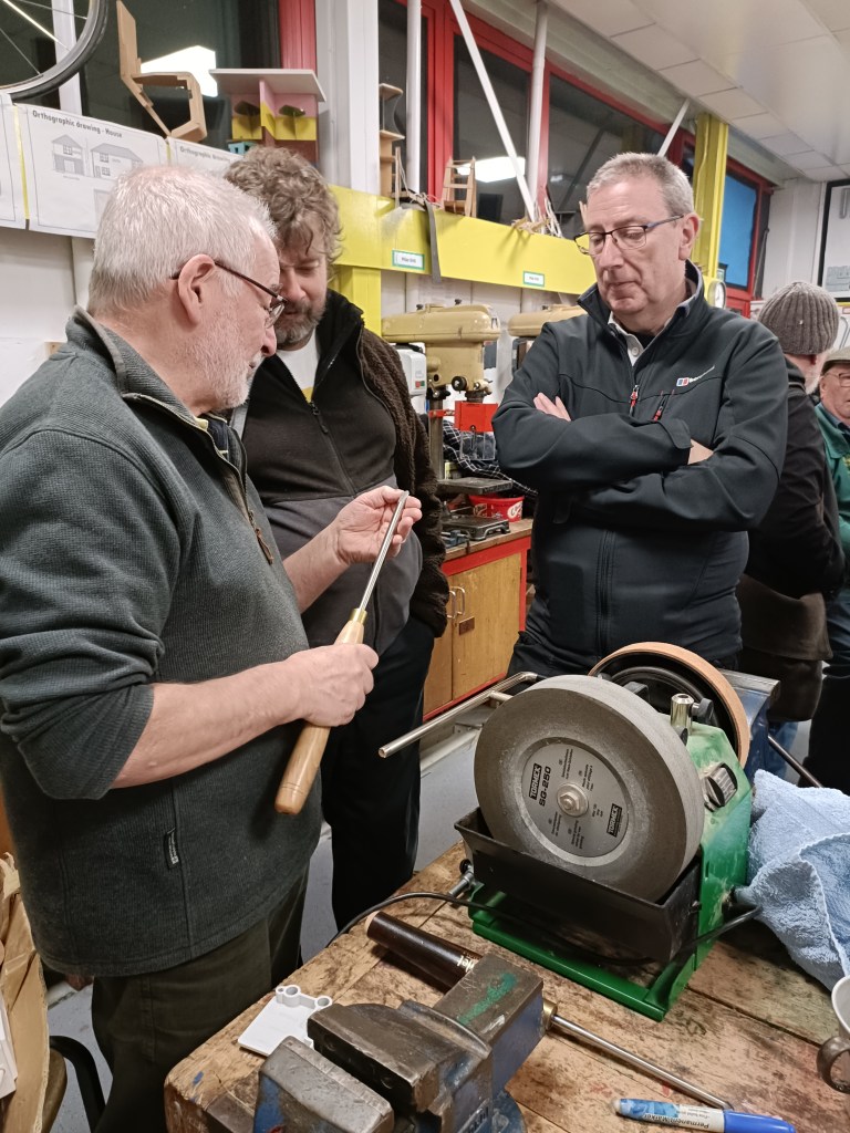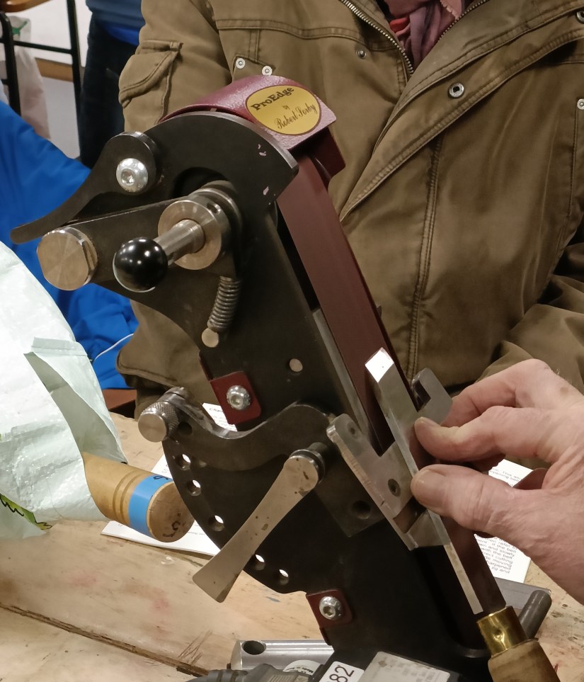 The first meeting of the year began with our traditional curtain – raiser – a demonstration of various types of sharpening systems – essential for every woodturner. Members were treated to not on, not two, not even three but four different systems to compare and contrast. No excuse now for blunt tools!