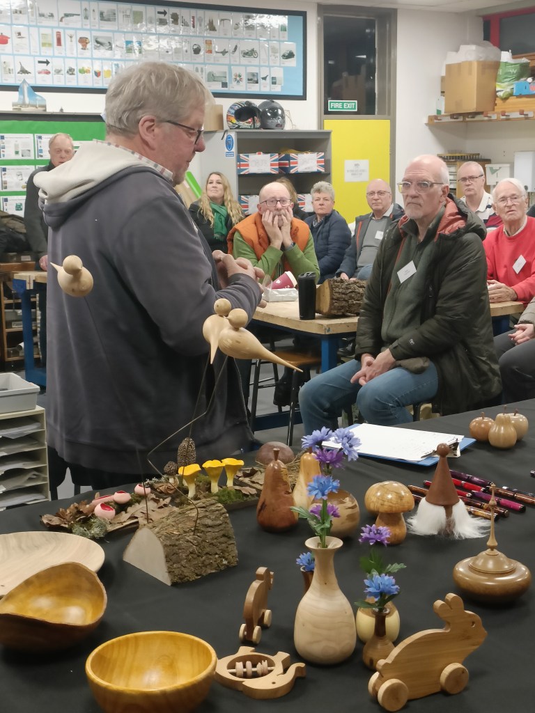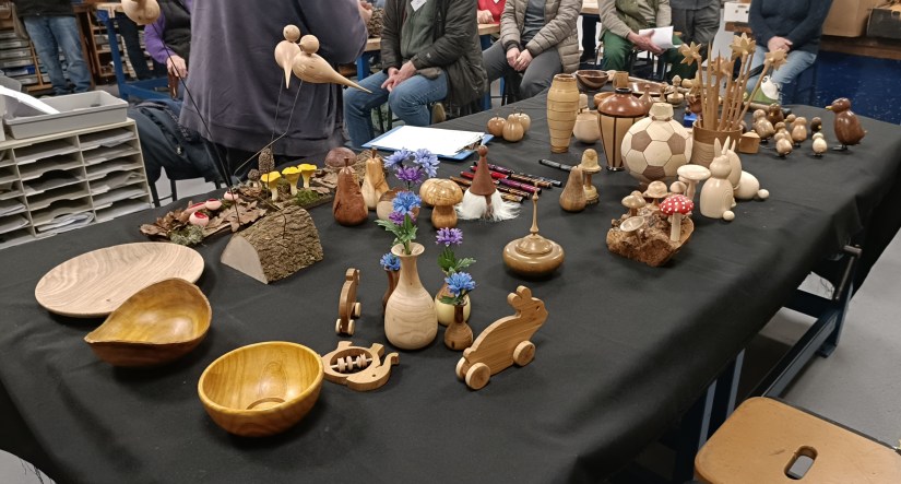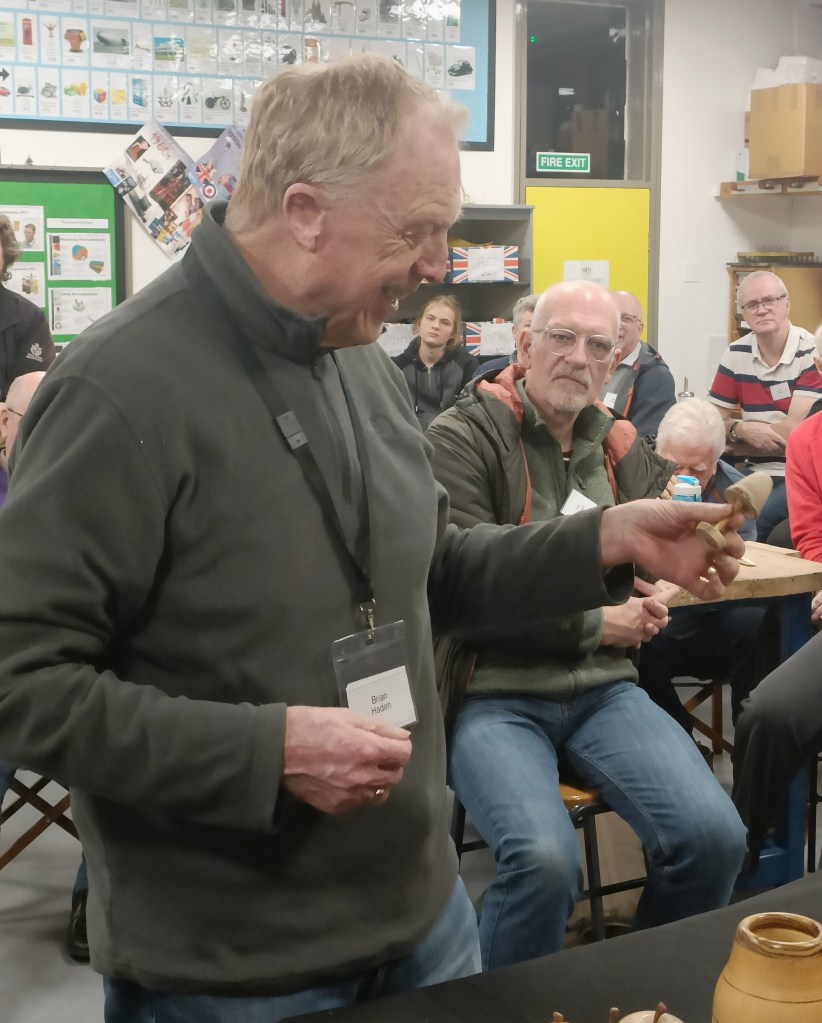The evening kicked off with contributions from two new faces, Sue and Richard, and the interesting stories attached to their projects. Eugene was then called forward to explain his involvement with ‘Men in Sheds’ and how that led to the production of his items.