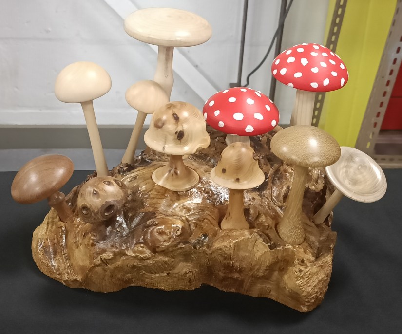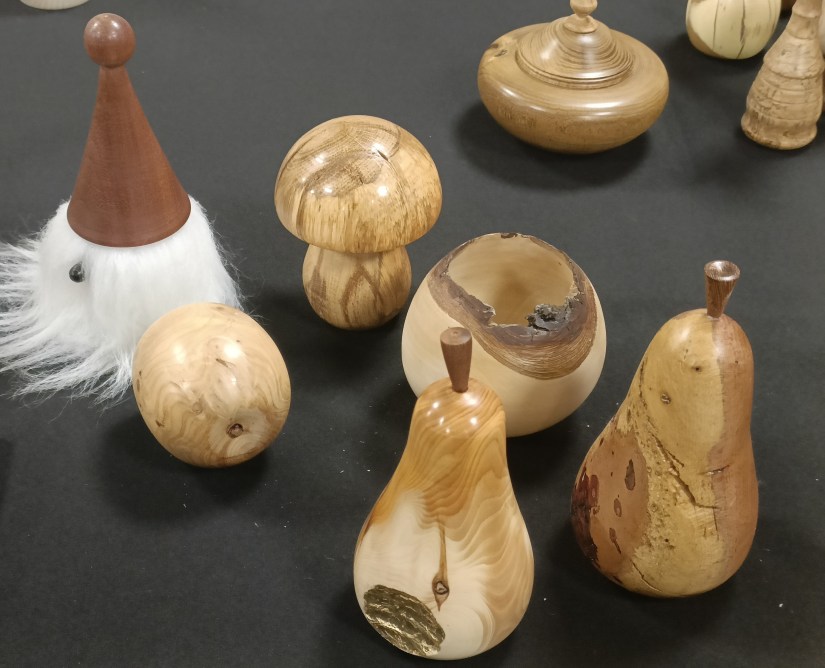 After refreshments the whirlwind continued with Steve’s fungi, Dexter’s tricky little pot, Angela’s apples and pears and a variety of items by Alan Edwards.