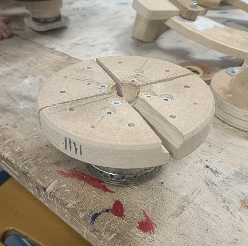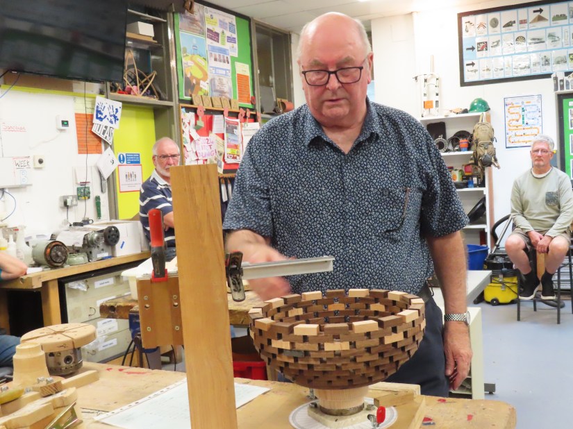 Roy took the theme on by showing everyone his method and jig for open segmented work.