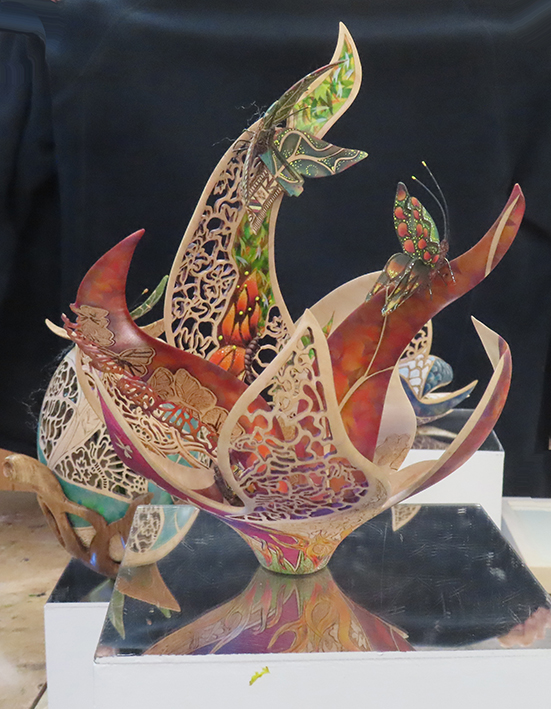 This year’s all day demonstration was given to the club by internationally acclaimed wood artist and current President of the AWGB Joey Richardson. Her delicate and highly individual works are sought by collectors all over the world and so it was a privilege to see how she goes about creating her pieces.