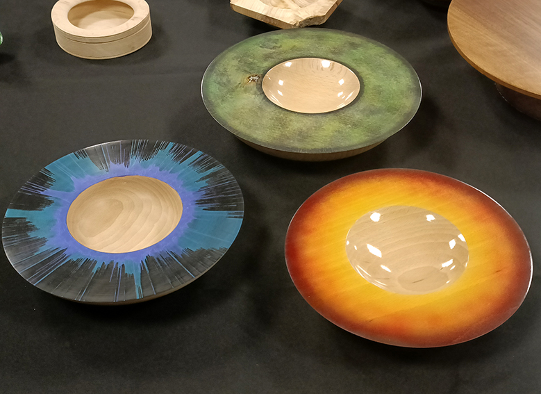 As ever, a really good and varied response tonight with a sizeable contribution from some of our newer members. Pieces of work inspired by our recent demos by Stewart Furini and Joey Richardson kicked off the evening. Nick shared his experiments and methods with spin decoration and Steve channelled his inner Joey to produce his 3 items.