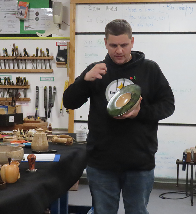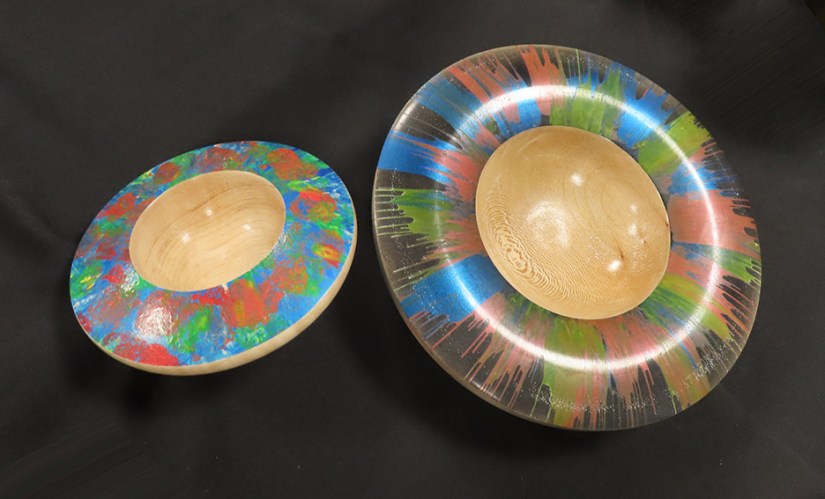 As the AWGB discussion, of necessity, took a while the second half of the evening, hosted now by Sue, was a little truncated. Russell showed what he’d done with bowling balls and answered several queries about the process. The remainder of his varied collection of items had to be rushed through before surrendering the floor to Kevin and Dexter.