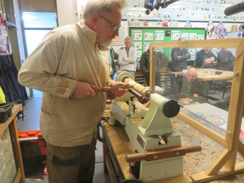 The club welcomed back local ‘almost professional’ turner Wolfgang Schulze – Zachau who choose to demonstrate a number of small projects which would be of particular interest to our growing ranks of novice turners.