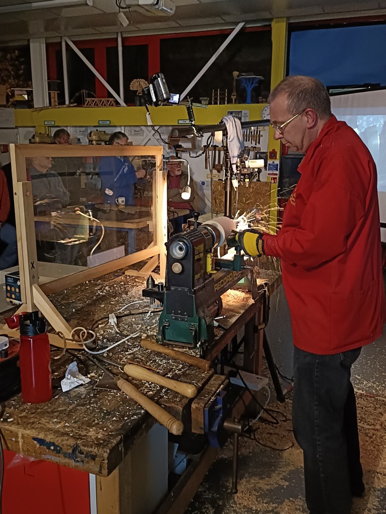 As usual on our Hands On evenings we get out our 4 club lathes for members to have a go under the watchful eyes of our lathe leaders. The project set tonight was to make a needle case and a number of members, new and not so new, tackled the task.