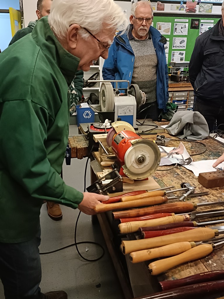 Our first ‘Hands On’ evening of the year was very well attended with lots of new faces. Welcome to you all! The project theme for the night was to make a bradawl under the watchful eyes of of 4 lathe leaders Phil, Alan Edwards, Steve Martin and Alan Jones and quite a few of our newer visitors were able to ‘have a go’.