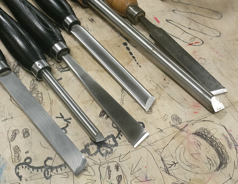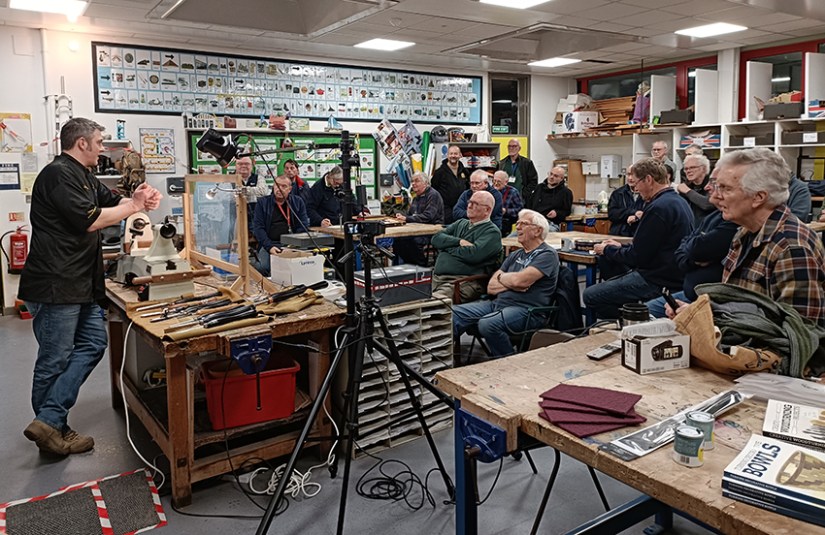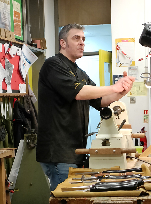 In a logical progression he took us step – by – step through the various tools you can use – explaining the merits of each and ways to sharpen them. Using a planing cut he went through the do’s and don’t’s of each as well as correct stance and tool presentation etc before progressing on to peeling cuts for tenons.