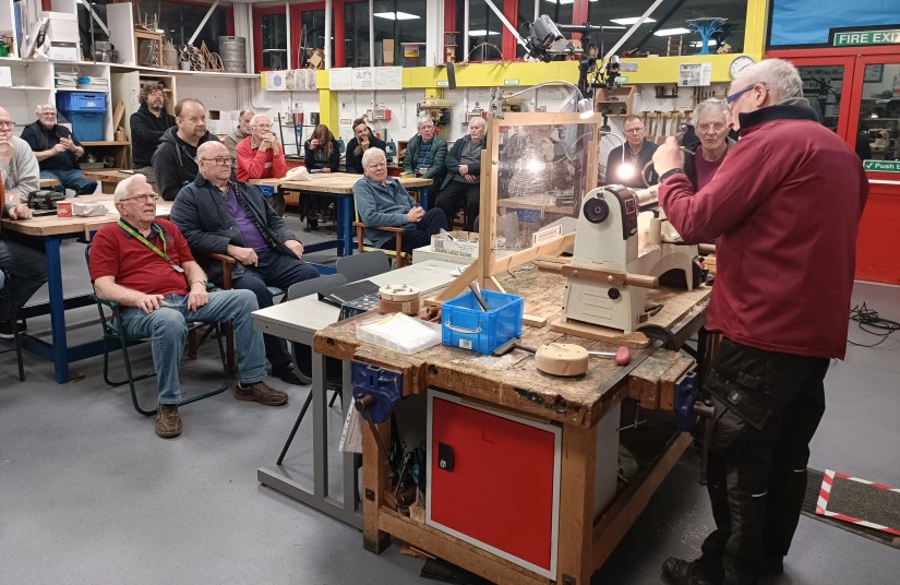 A few members shared with us a number of jigs that they have made to solve a variety of woodturning problems. Alan Edwards starting the evening off with a number of devices.