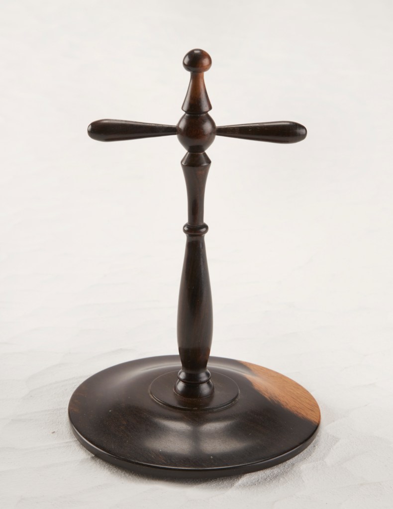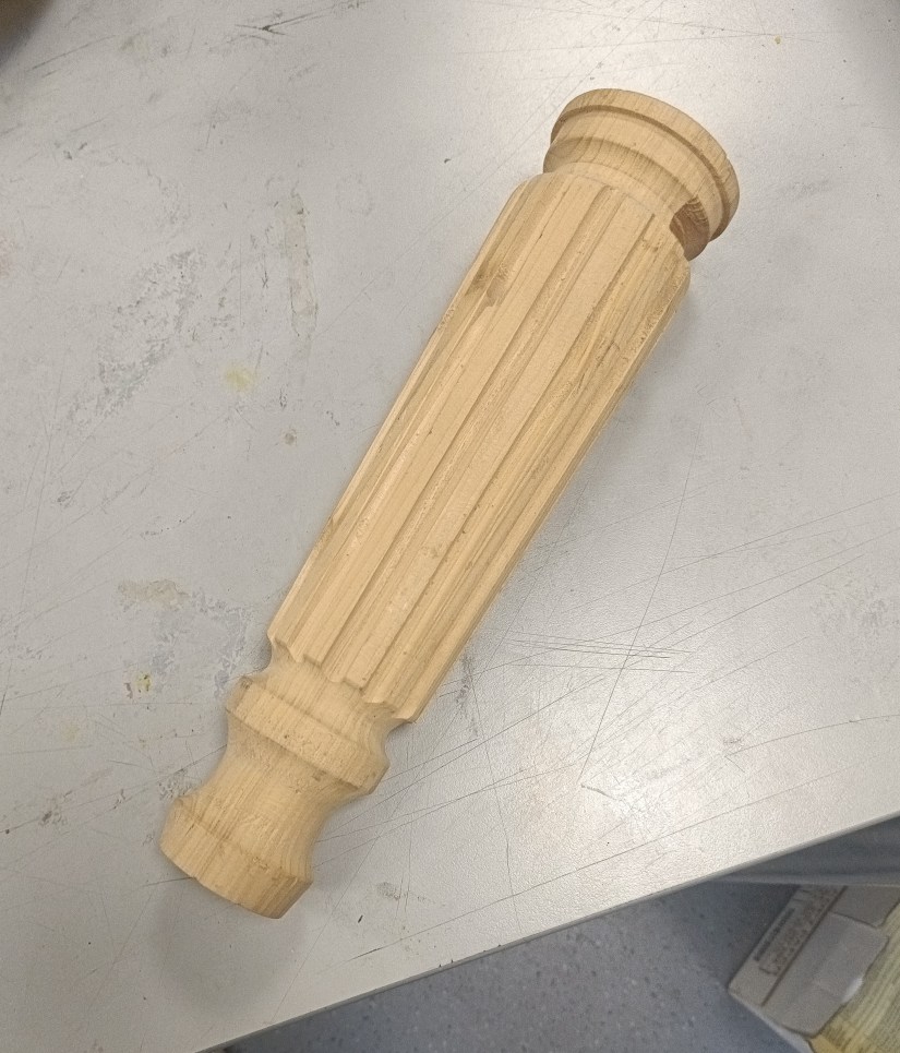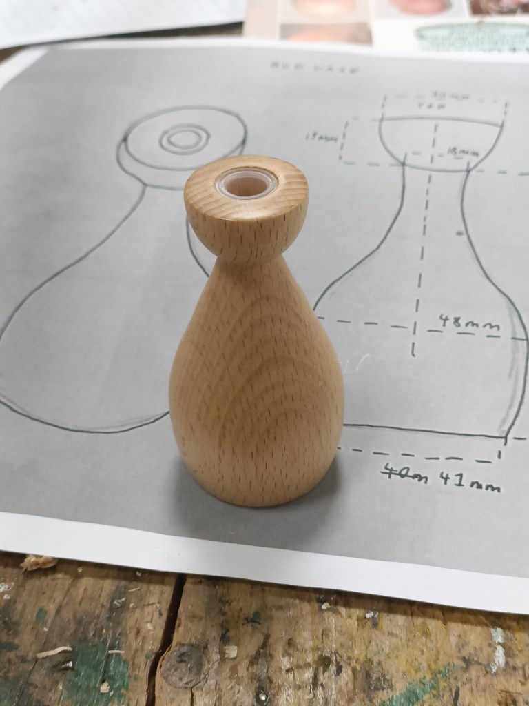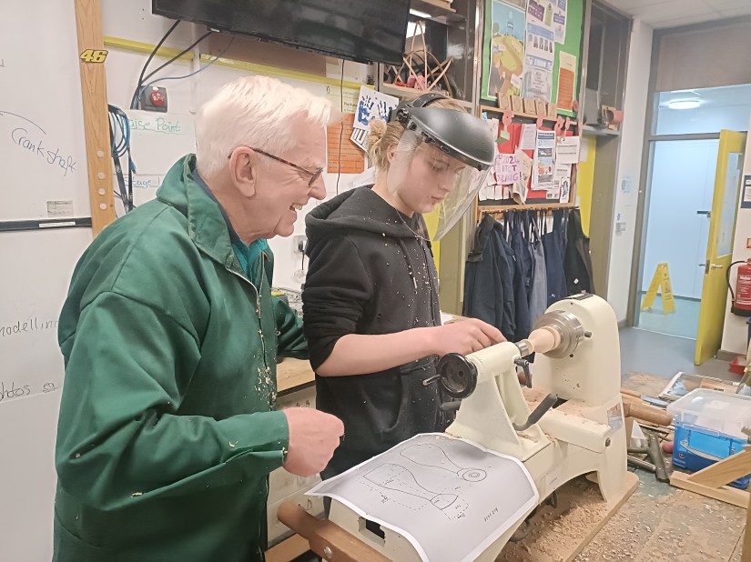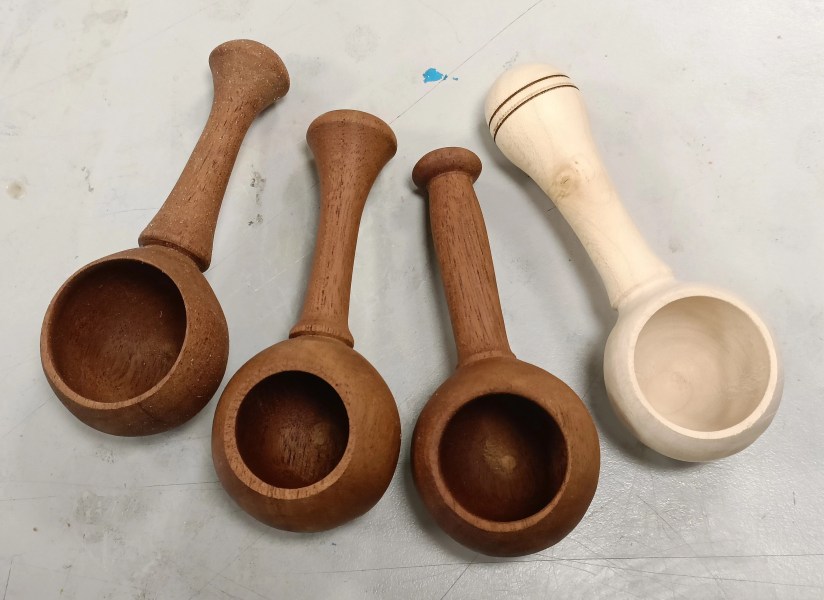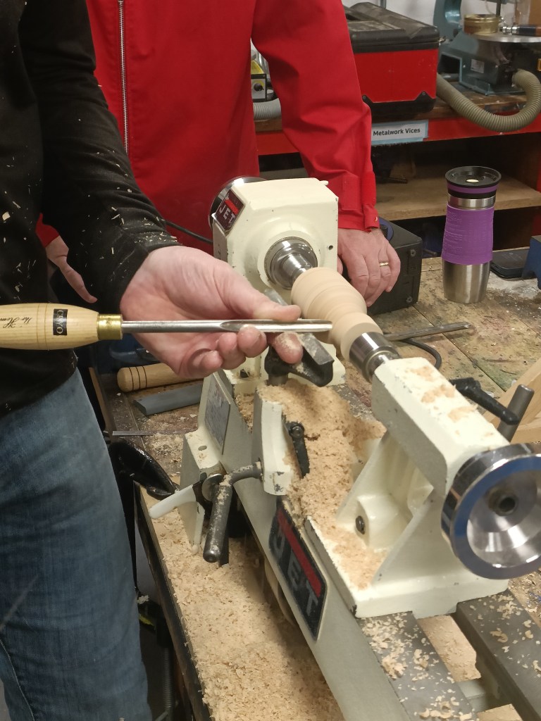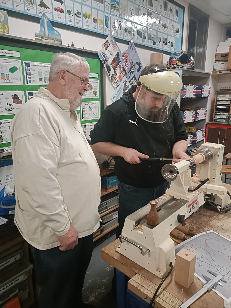 Alan E returned to the floor to show us jigs for bandsaw work, a spindle steady and a jig for turning pendants with off centre holes.