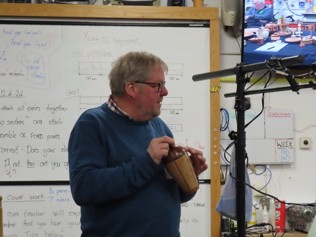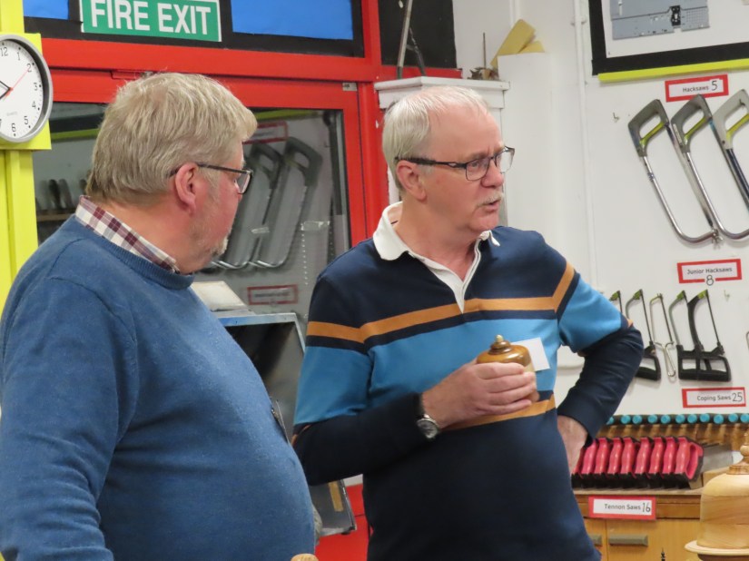 Contributions next from Alan P, Mark and finally Geoff who showed us jigs that he uses to produce his signature ducks.